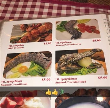 (I mean, how can you miss out on steamed crocodile head and BBQ crocodile?)