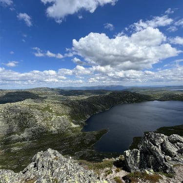 Another must-do is the Toreskyrkja hike. It begins in dense forest, but soon opens up into stunning mountain scenery. At the top, you’re rewarded with a spectacular view of a crystal-clear lake. I sat there for an hour just soaking it all in — a moment of pure peace. This hike is also doable for most people, though it has a very different vibe than Gaustatoppen.