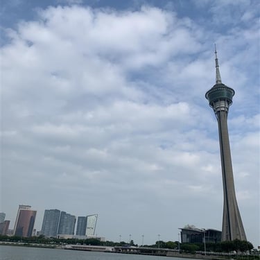 In the afternoon, I took the bus from Praça de Ferreira do Amaral toward Taipa. On the way, I passed the Macau Tower, which is the tallest building in the city at 338 meters. It’s not just for views — the tower is famous for having one of the highest commercial bungee jumps in the world!